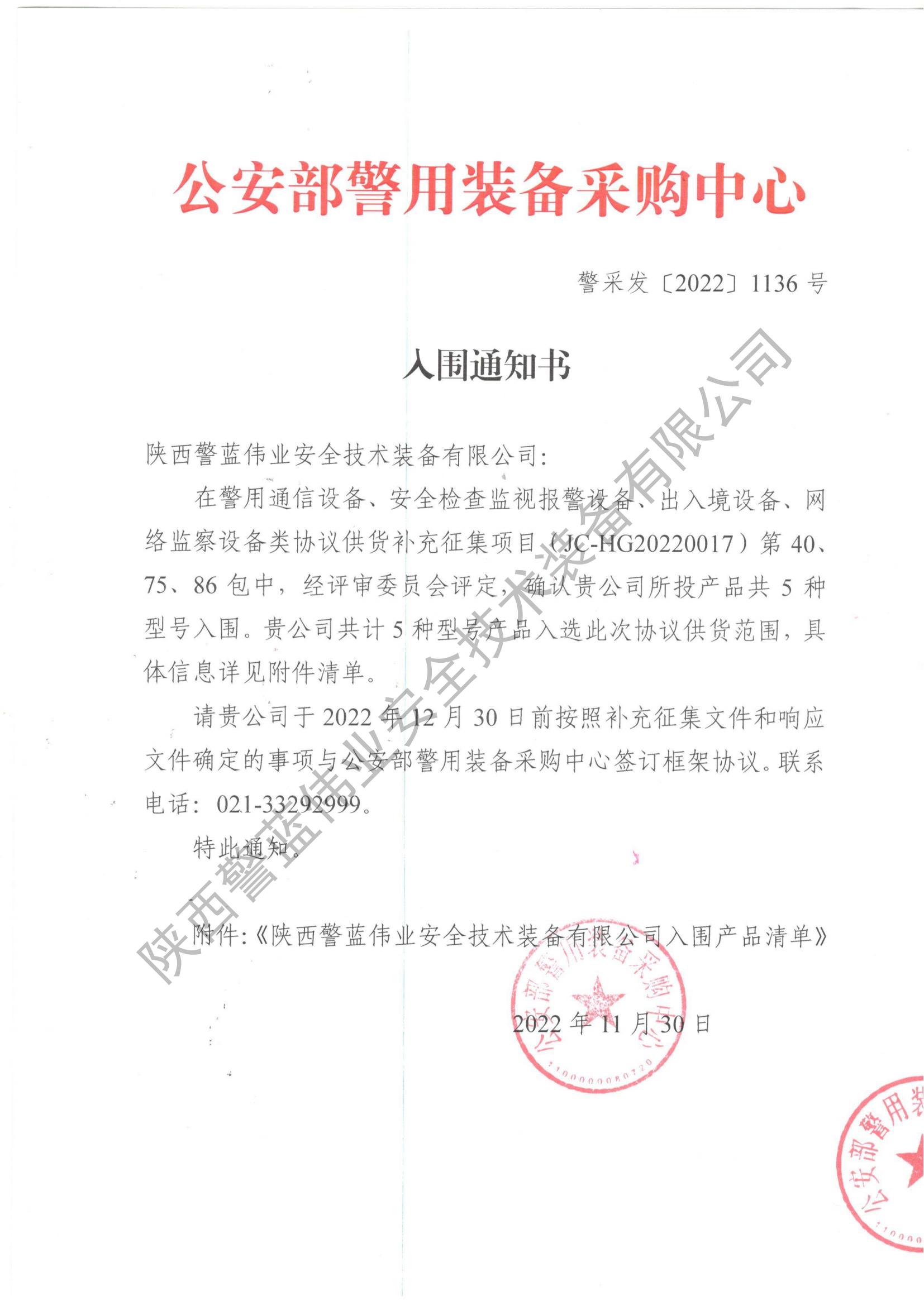 公安部警用裝備采購中心警用通信設備、安全檢查監(jiān)視報警設備、出入境設備、網絡監(jiān)察設備類協(xié)議供貨項目,11月30日公布結果。陜西警藍偉業(yè)安全技術裝備有限公司研發(fā)的氣體酒精含量檢測儀、單警執(zhí)法記錄儀、4G執(zhí)法記錄儀、5G執(zhí)法記錄儀等5款裝備成功入圍??!