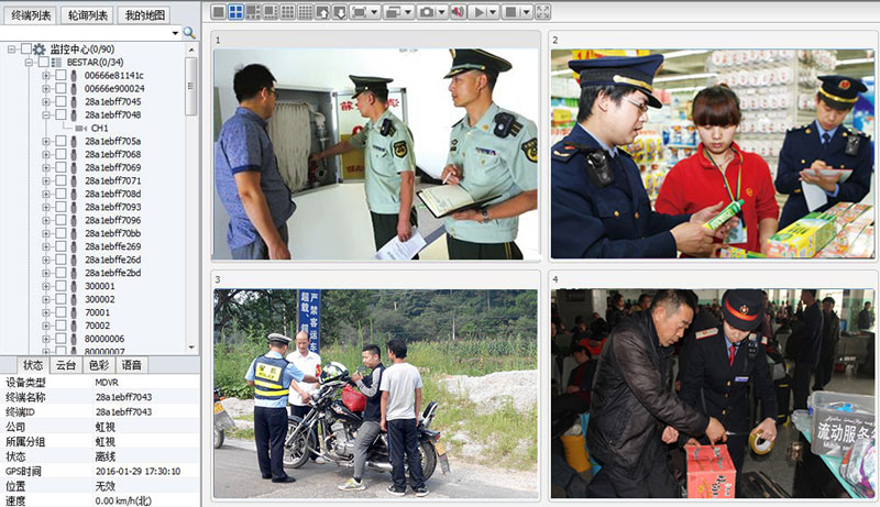 監(jiān)控客戶(hù)端軟件可同時(shí)監(jiān)視多路前端單兵終端圖像功能??梢栽O(shè)置4分屏、6分屏、9分屏和16分屏
