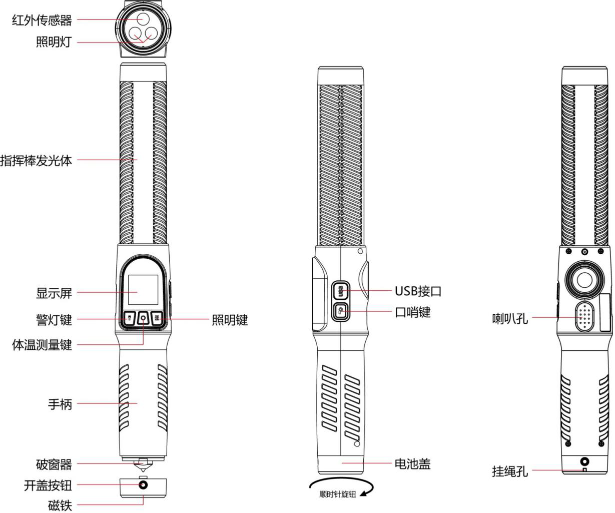 指揮棒功能 | 紅藍光常亮、頻閃、交互閃功能可任意切換,也可單色燈光 |