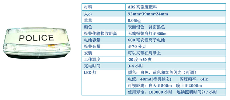 7.防闖入預警系統(tǒng)配備的報警接收器為肩燈報警器,當預警器被觸發(fā)后,報警器接收到報警信號后,雙列紅色指示燈應閃爍,并發(fā)出聲音報警及振動報警;