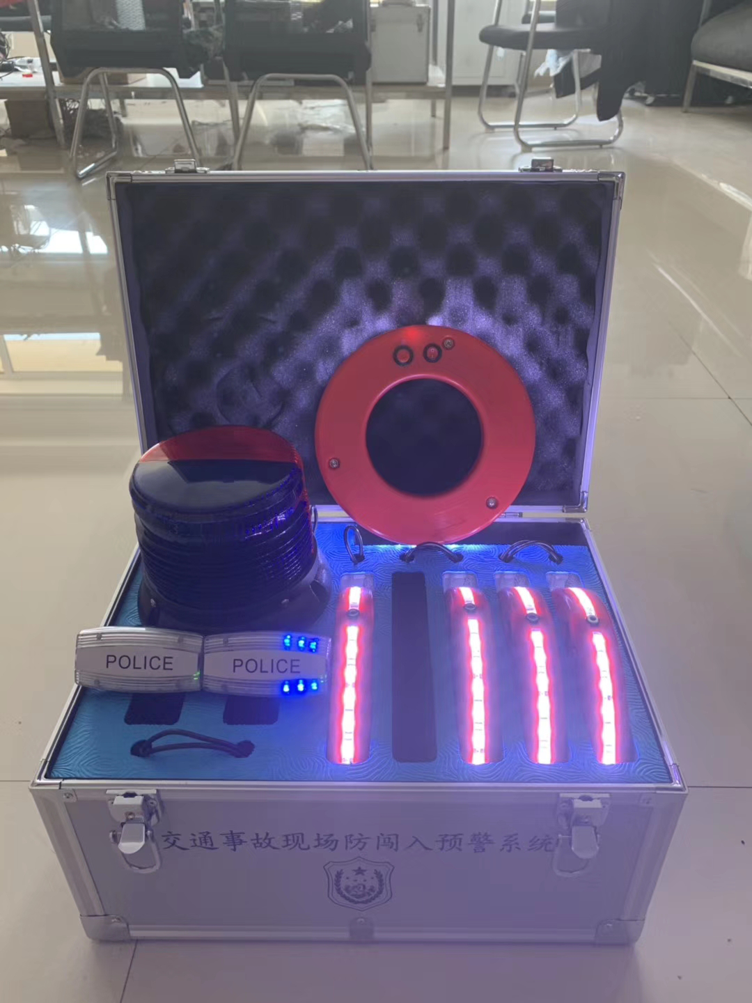 1.標配由5個預警器、2個肩燈式報警器、1個大功率中繼報警器(大燈)、設備主箱體組成。