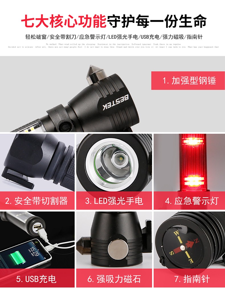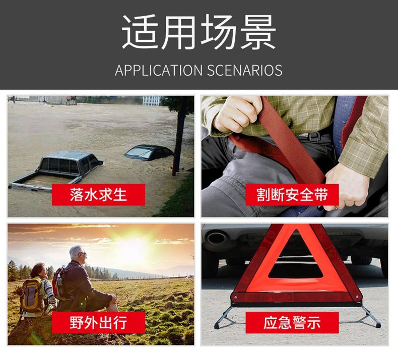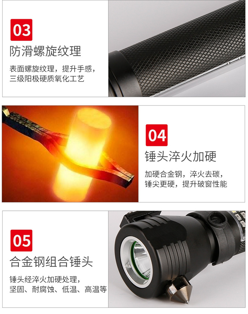 4.頭部左邊配有高硬度合金安全錘,可以輕松擊碎玻;