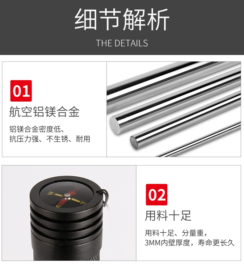 9.尾部有指南針,方便戶外使用(指南針為磁體感應(yīng)物,不能靠近鋼鐵件);