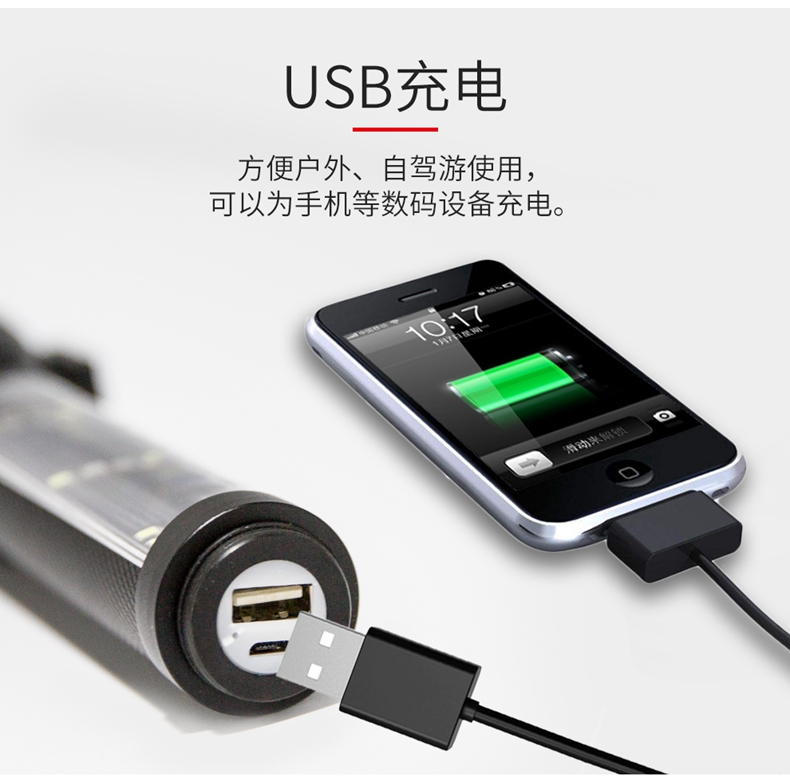 10.手電尾部有USB輸出功能,外出時可以為手機等數(shù)碼設(shè)備充電。
